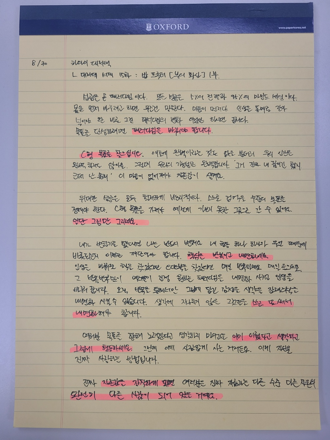다시 한번 말씀드릴게요 생각에 지나치지 않은 그것들을 쓰고 또 써서 내면화해야 합니다 (100번 쓰기와 유사하군)