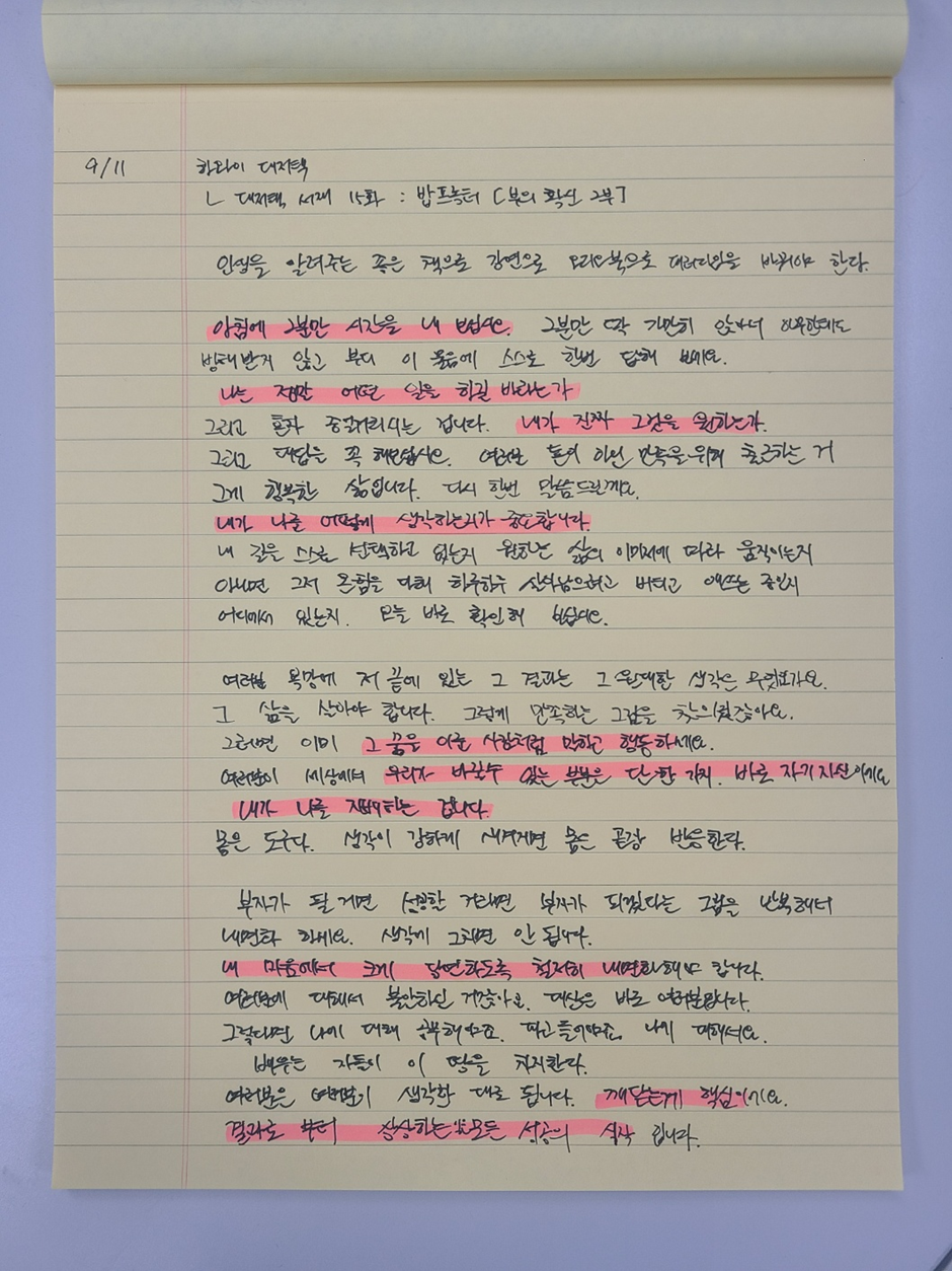 여러분 여기서 진짜 중요한 건요 그 어떤 단계 든 남을 흉내 내지 말고 자기 자신만의 모습을 적는 겁니다